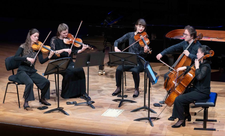 Nach der Eröffnung mit dem fulminanten 4. Satz aus dem C-Dur- Streichquintett von Franz Schubert begrüßte die Zirkusdirektorin und Vereinsvorsitzende Professorin Ulrike Sonntag im Besonderen die Schirmherrin der Veranstaltung Ministerin Petra Olschowski und den Hausherren Rektor Axel Köhler.