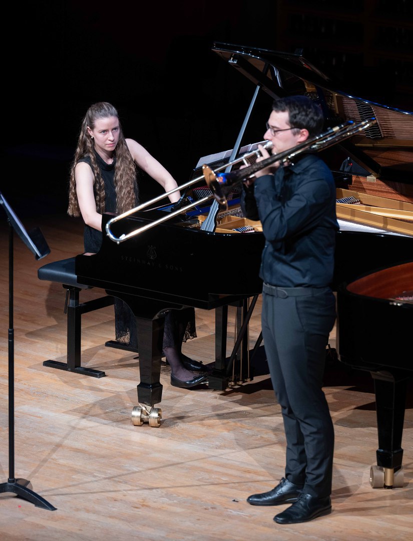 Virtuose Glanzpunkte boten die Aufführung von Stjepan Šuleks eindrucksvoller „Sonata Vox Gabrieli“ für Posaune und Klavier, Astor Piazzollas „Nightclub 1960“ und Witold Lutoslawskis atemberaubende Paganini- Variationen für Klavierduo und Bohuslav Martinus effektvolle Rossini- Variationen für Cello und Klavier.