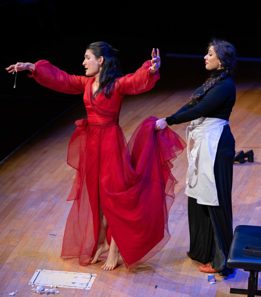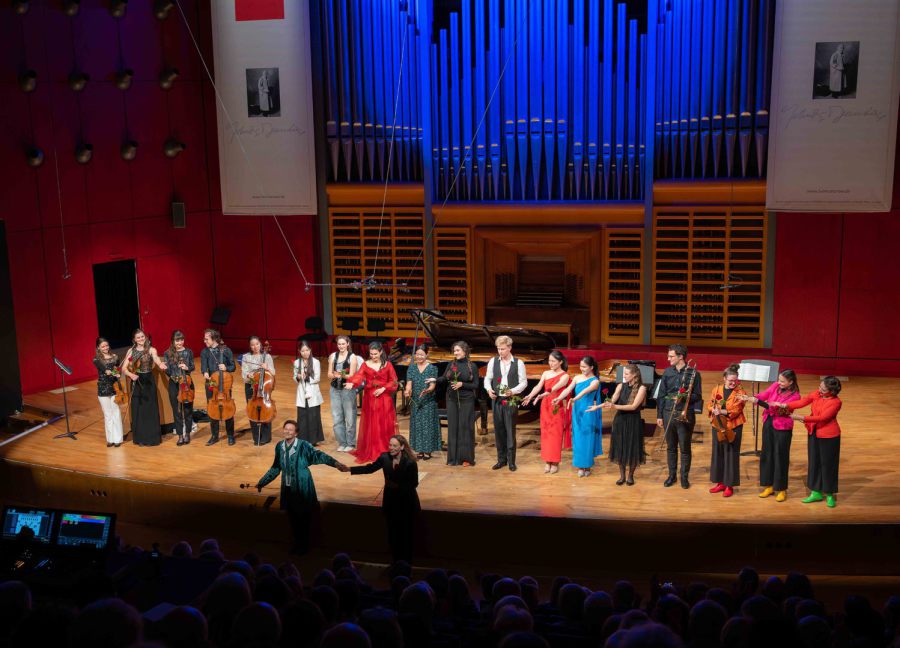 Die 18 jungen Künstlerinnen und Künstler und die musikalischen Leiterinnen, Professorin Ulrike Sonntag und Veronika Stoertzenbach ernteten stürmischen Applaus mit ihrem pfiffigen Finale und entließen das hochgestimmte Publikum zu einem geselligen Umtrunk in die Foyers um den Konzertsaal.